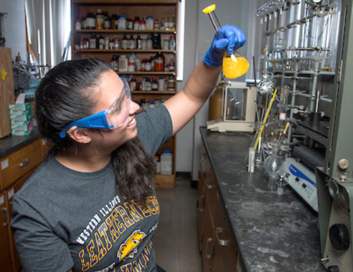 With excellent student to teacher ratios, the WIU Department of Chemistry offers a unique, friendly atmosphere of faculty mentorship to our students. Our faculty are very active researchers with knowledge of the latest applications of chemistry. The chemistry faculty involve students in all stages of scientific research, mentoring our students as they achieve their academic and career goals.