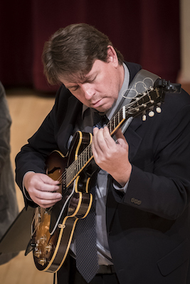 Email: GM-Turner@wiu.edu George Turner has worked as a jazz and classical guitarist and guitar teacher since the early 1990s. Since then he has maintained an active performance schedule, both as a leader and as a sideman in a wide variety of musical settings. He has played with many of Illinois’ top jazz musicians and has been featured on many recordings, including his own Slip, Don’t Fall (2000) and the Almost “A” Quintet’s Cumin Seed and Peppercorns (2013). In 2015 he completed the Doctor of Musical Arts degree in jazz studies at the University of Illinois at Urbana-Champaign. Mr. Turner has been the professor of guitar at Western Illinois University in Macomb since 2011, and he is a member of WIU’s faculty jazz combo the Hopper Jazztet.