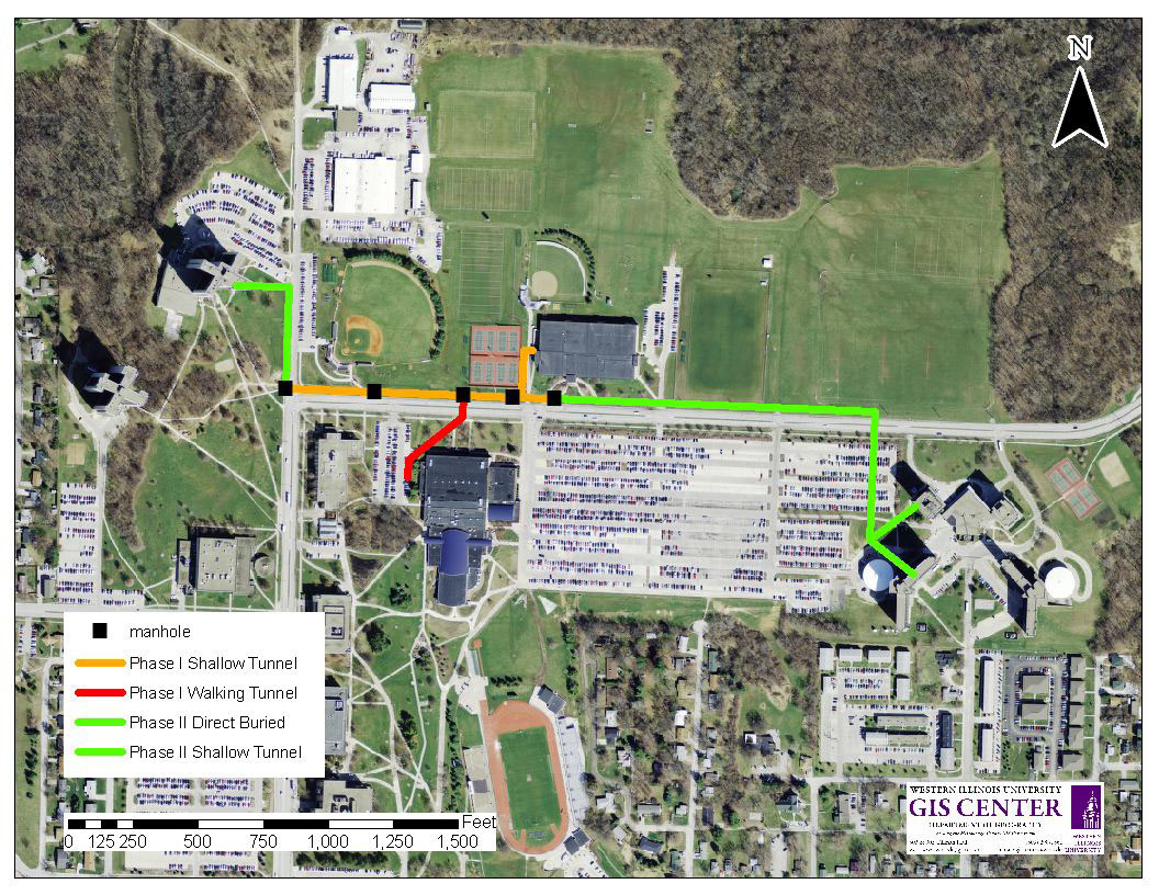 Phase I of the project includes installing 400-feet of walk tunnel and 1,200-feet of shallow tunnel near Western Hall. According to Scott Coker, assistant director of facilities planning and construction, the existing walk tunnel just to the west of Western Hall and to the north under University Drive will be extended utilizing the unused pedestrian tunnel. Phase II of the steam line project, which is expected to begin in Fall 2011, will extend the tunnel to Thompson Hall and the North Quad and will include more than 2,500 feet of shallow tunnel.