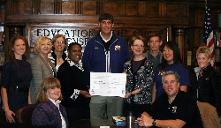 Members of WIU Employee Wellness committee presented an almost $500 check/donation to Samaritan Well Oct. 29, 2010. Pictured in the photo left to right: (front row) Karen Greathouse, chair, dietetics, fashion merchandising and hospitality (DFMH); Mark Kelley, chair, health sciences; (back row) Kelly Kenady, assistant director of fitness services at Campus Recreation; Cathy McMillan, assistant professor, kinesiology; Judy Yeast, associate director, Campus Recreation; Andrea Henderson, director, equal opportunity and access; Don Mutch, environmental health and safety technician II, WIU Physical Plant; Cynthia Struthers from Samaritan Well; John Simmons, chair, philosophy and religious studies; Liz Greenlee, graduate student/assistant (health sciences); and Milly MacDonell, director, Campus Recreation. Photo by Jody Zscheck