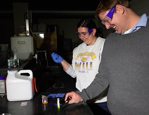 With excellent student to teacher ratios, the WIU Department of Chemistry offers a unique, friendly atmosphere of faculty mentorship to our students. Our faculty are very active researchers with knowledge of the latest applications of chemistry. The chemistry faculty involve students in all stages of scientific research, mentoring our students as they achieve their academic and career goals.