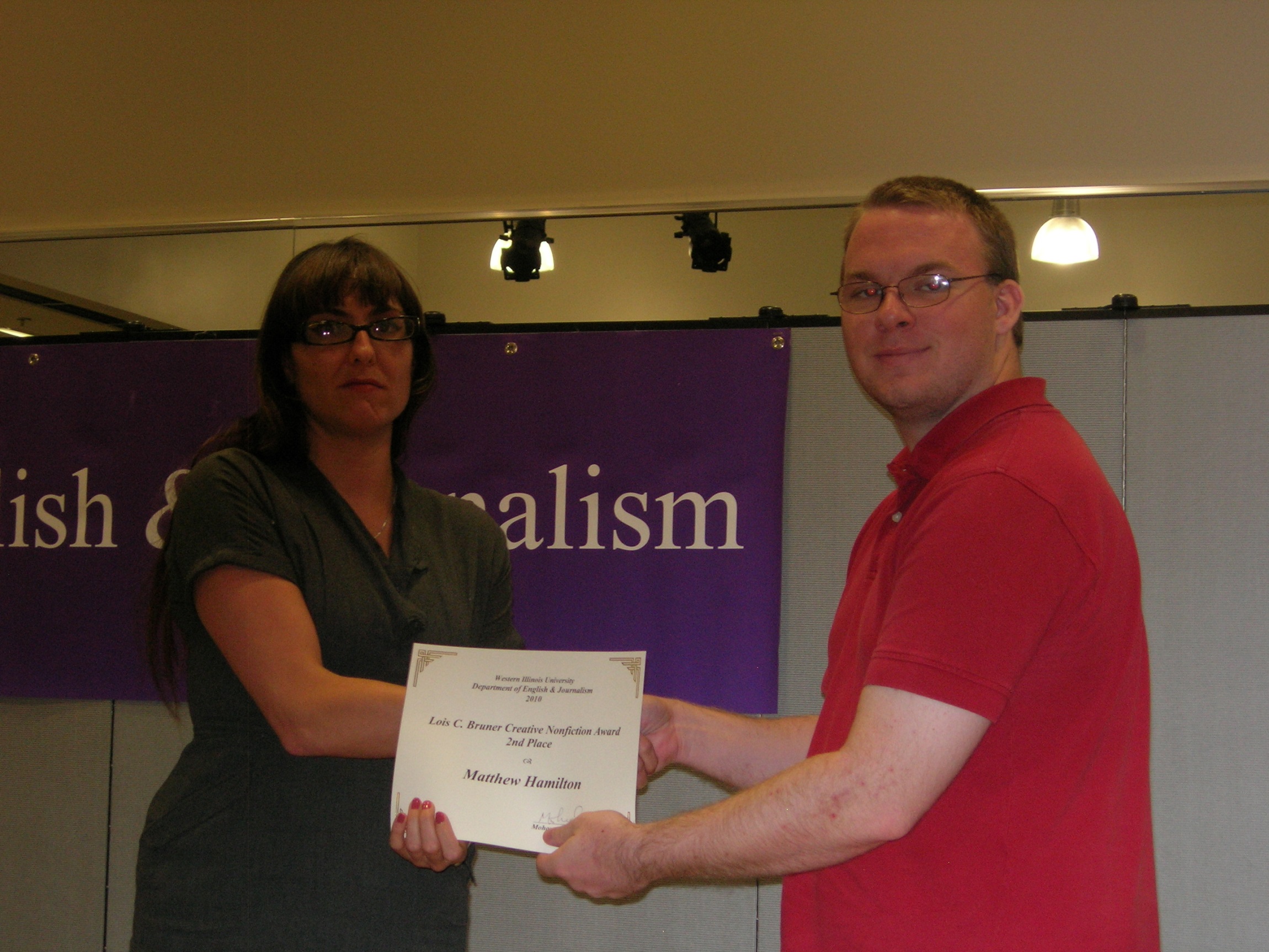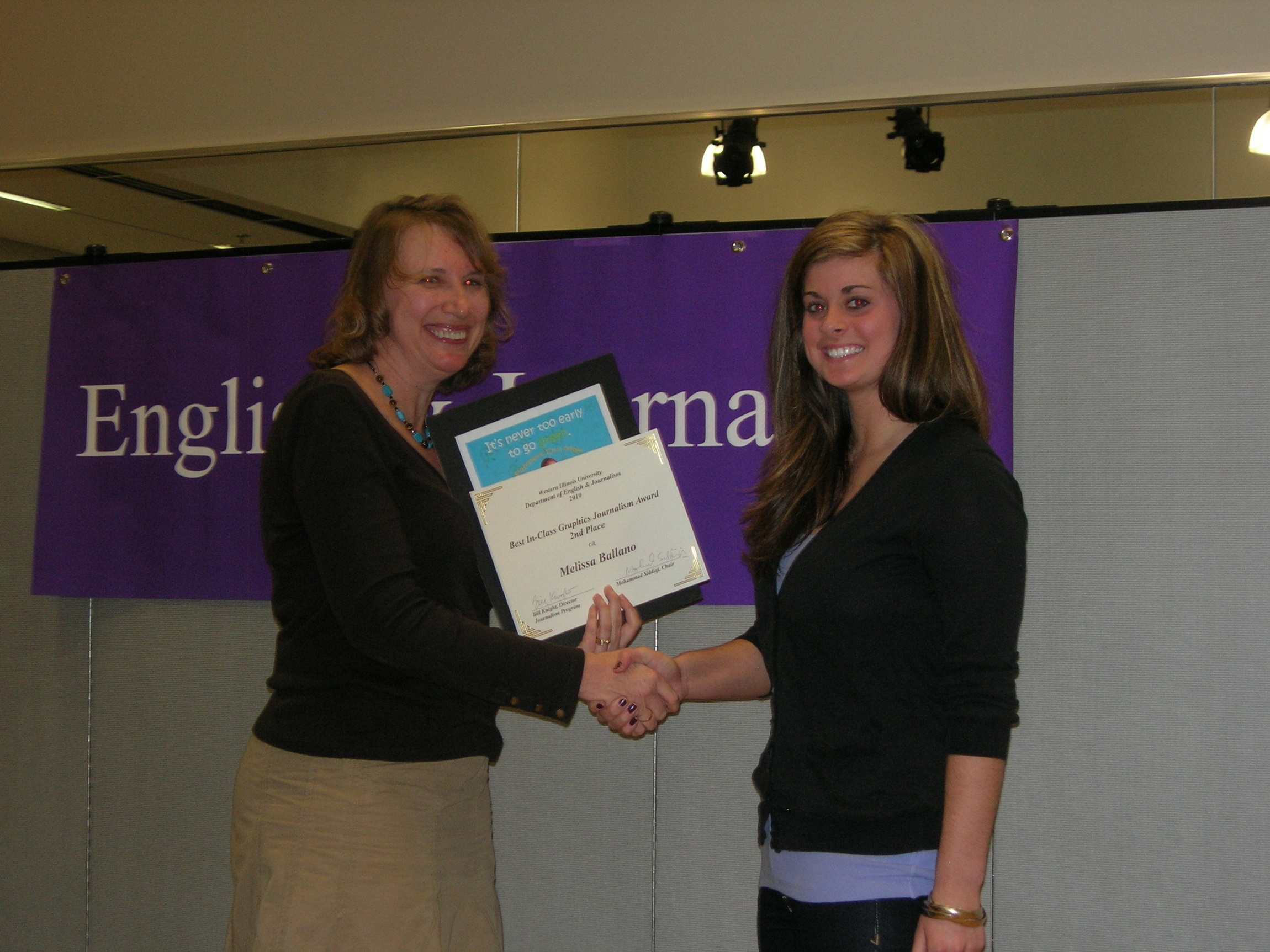 The Department of English and Journalism held its 2010 Awards Night on Wednesday, April 28, 2010 at 4:30 p.m. in the Multicultural Center Activity Room, announcing the winners of twenty-six awards from all areas of the program. Students selected for over $5,000 in scholarships were also honored. We thank all the students, family, faculty and staff who participated, including the faculty and staff who judged award applications.