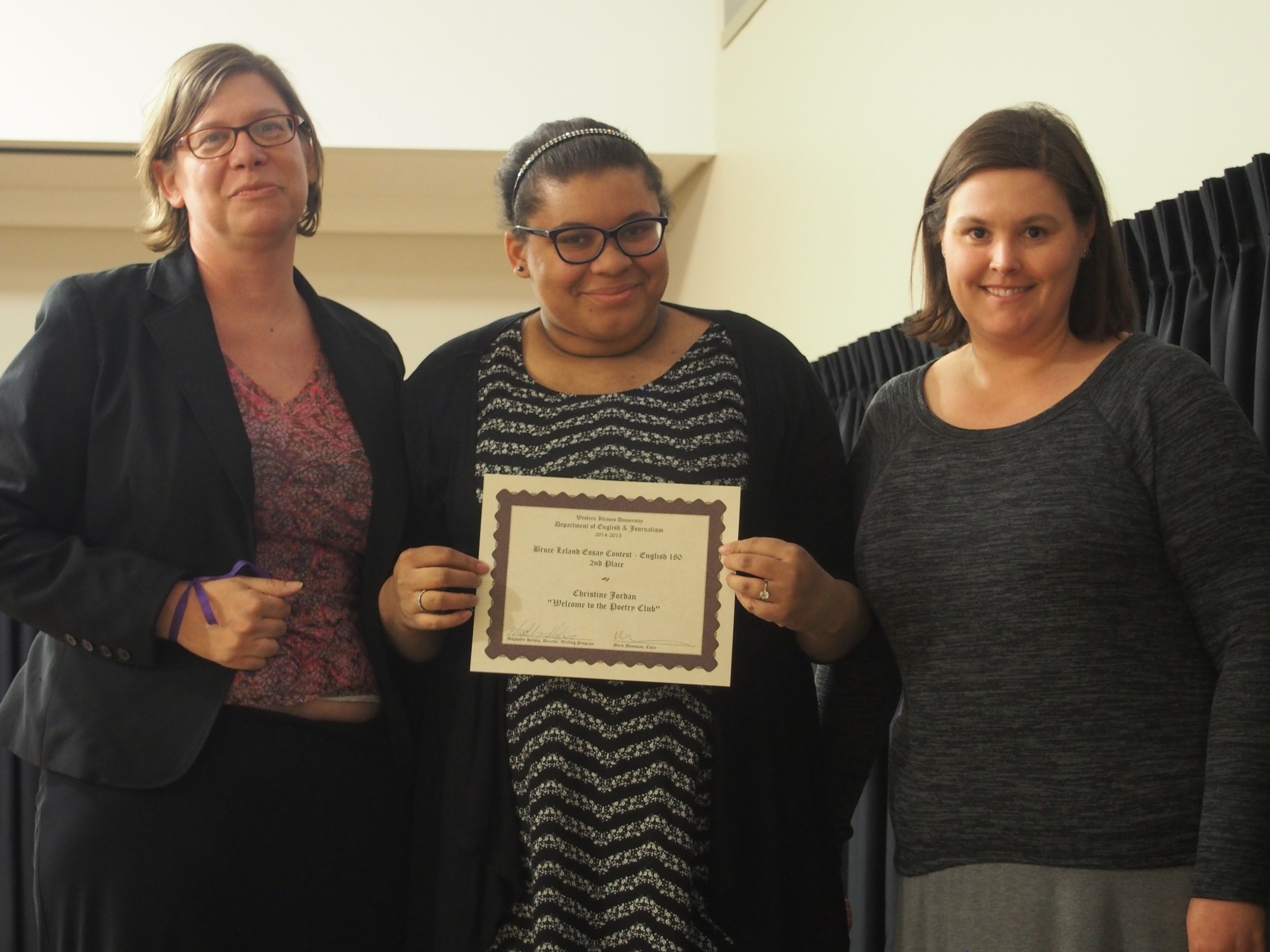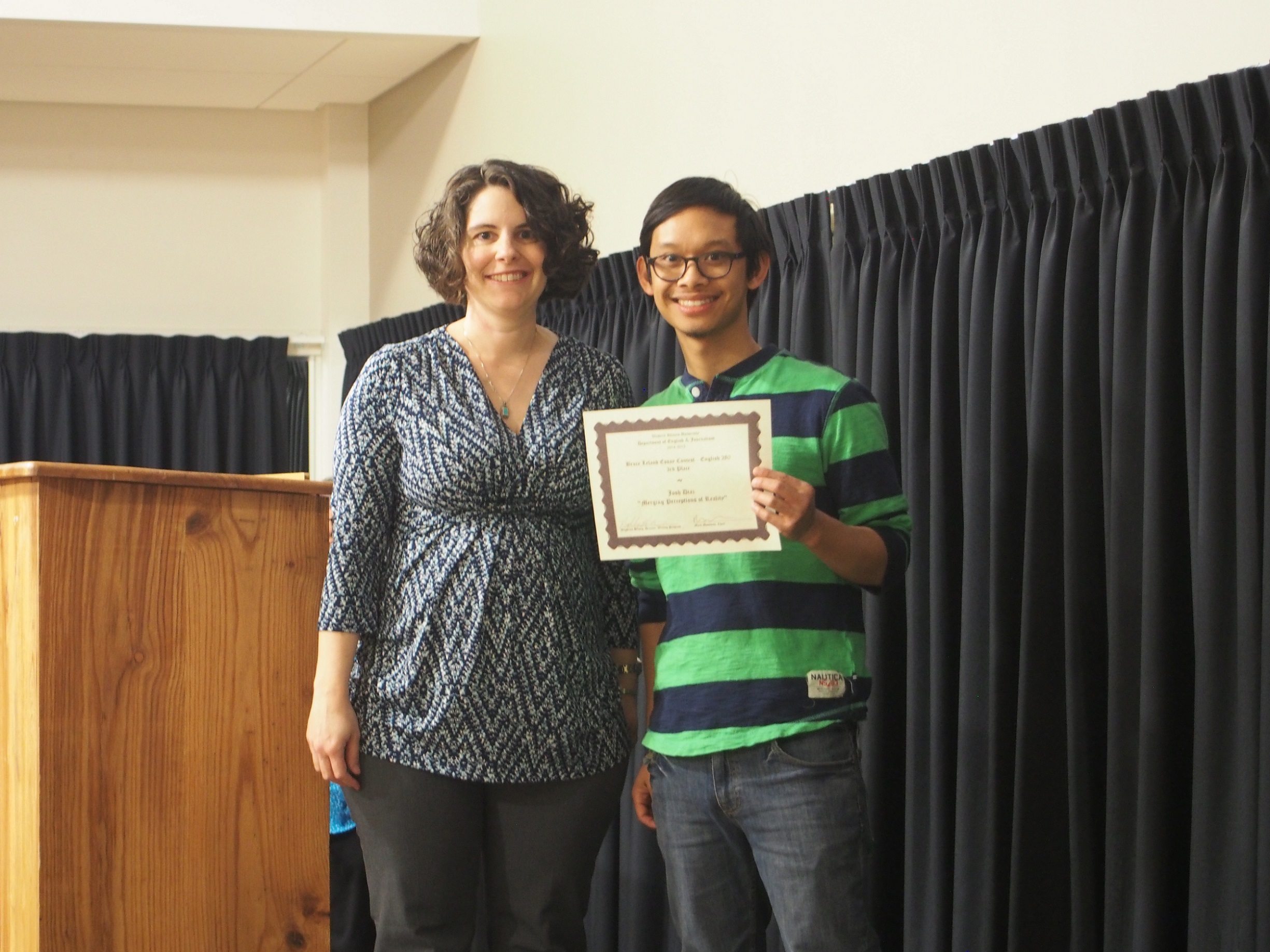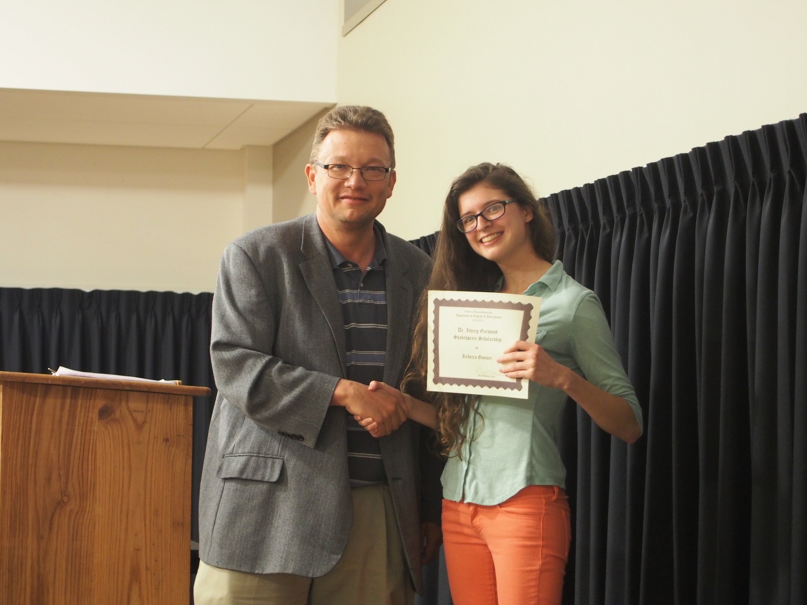 The Department of English held its 2015 Awards Night on Thursday, April 23, 2015 at 6:00pm in the Multicultural Center, announcing the winners of awards from all areas of the program. Both graduate and undergraduate students were awarded more than $13,000 in scholarships and awards.