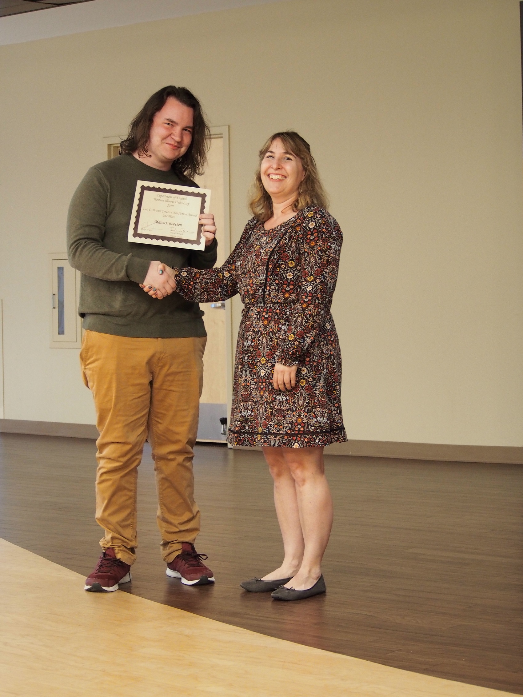 The Department of English held its 2019 Awards Night on Thursday, April 25, 2019 at 6:00pm in the University Union Lamoine Room. Selected faculty announced the winners of awards from all areas of the program.