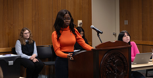 (pictured left to right) Psychology and Law Interns, Jayla Carle, Delma Cobb, Professor Kim McClure, DeTal Center GA Olajumoke Aderonmu, Julia Herrera, and Kit Denzler