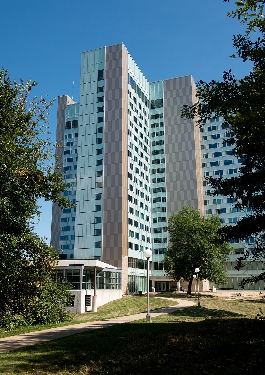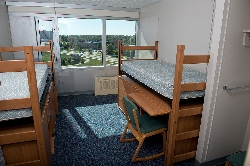 The 19-story, 800-room residence hall, on the northwest edge of the Macomb campus, was renovated as part of a $25 million construction and design project between 2012 - 2013. The scope of the project included removal and replacement of the building's exterior, heating and cooling units on floors 3-17, piping supplying water to the induction units on floors 3-17 and the roof on the main building and loading dock.