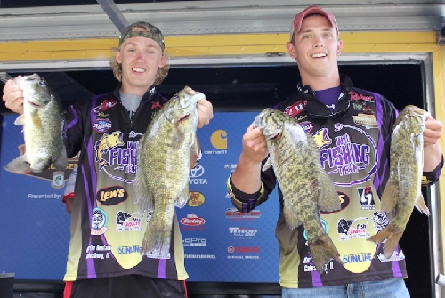On Saturday, the WIU team of Kit Benson and Wes Lashmett, a sophomore agriculture major from Winchester, IL, finished in eighth place in the Bassmaster College Series Midwest Regional. The pair caught 15 fish, weighing a total of 35 pounds and 12 ounces, during the three-day event in Lacrosse, WI.