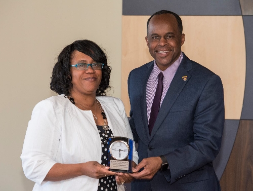 MACOMB, IL -- Andrea Henderson, director of the Office of Equal Opportunity and Access at Western Illinois University, received the Western Illinois University 2017 Cathy O'Neill Couza Award for Outstanding Leadership in Diversity for her contributions to the University and the community at the 28th annual President's Excellence in Diversity Awards Reception held last month on the WIU-Macomb campus.