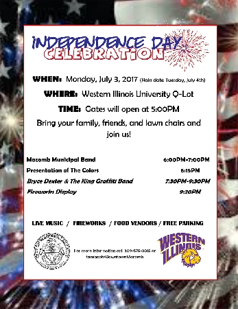 MACOMB, IL - Western Illinois University and the City of Macomb will present a variety of entertainment options and a fireworks display as part of the annual Independence Day, scheduled for Monday, July 3 in Q-Lot at WIU.