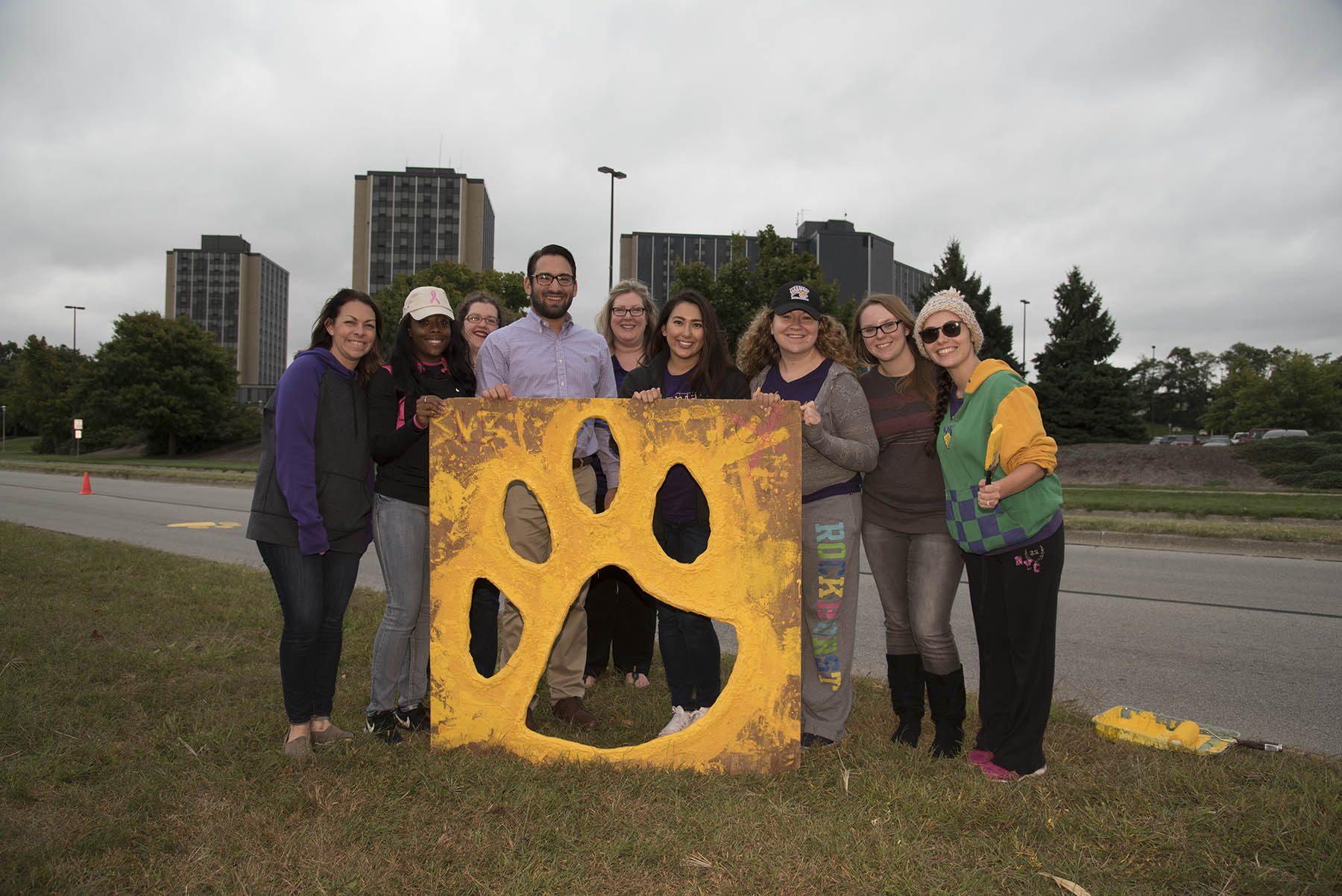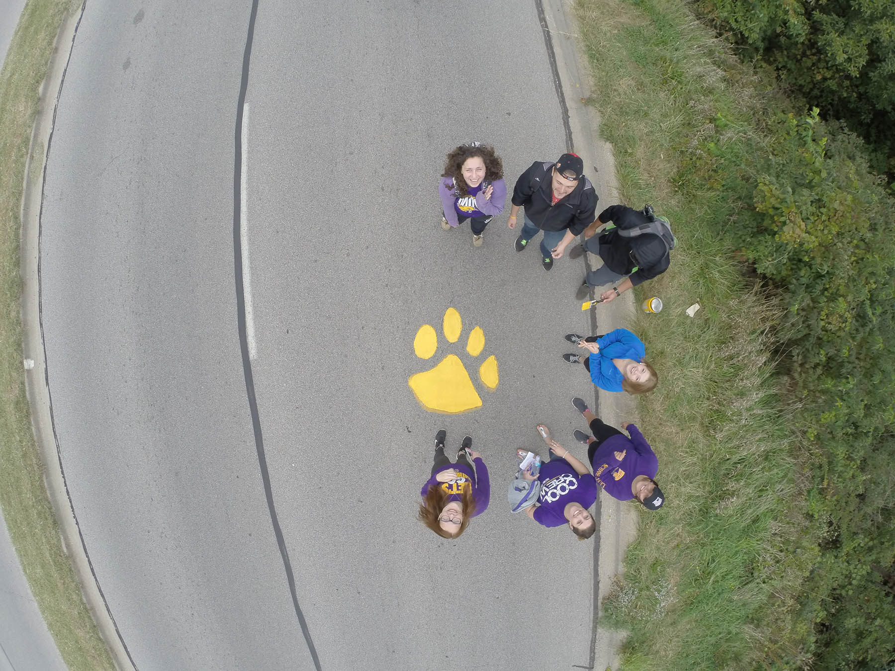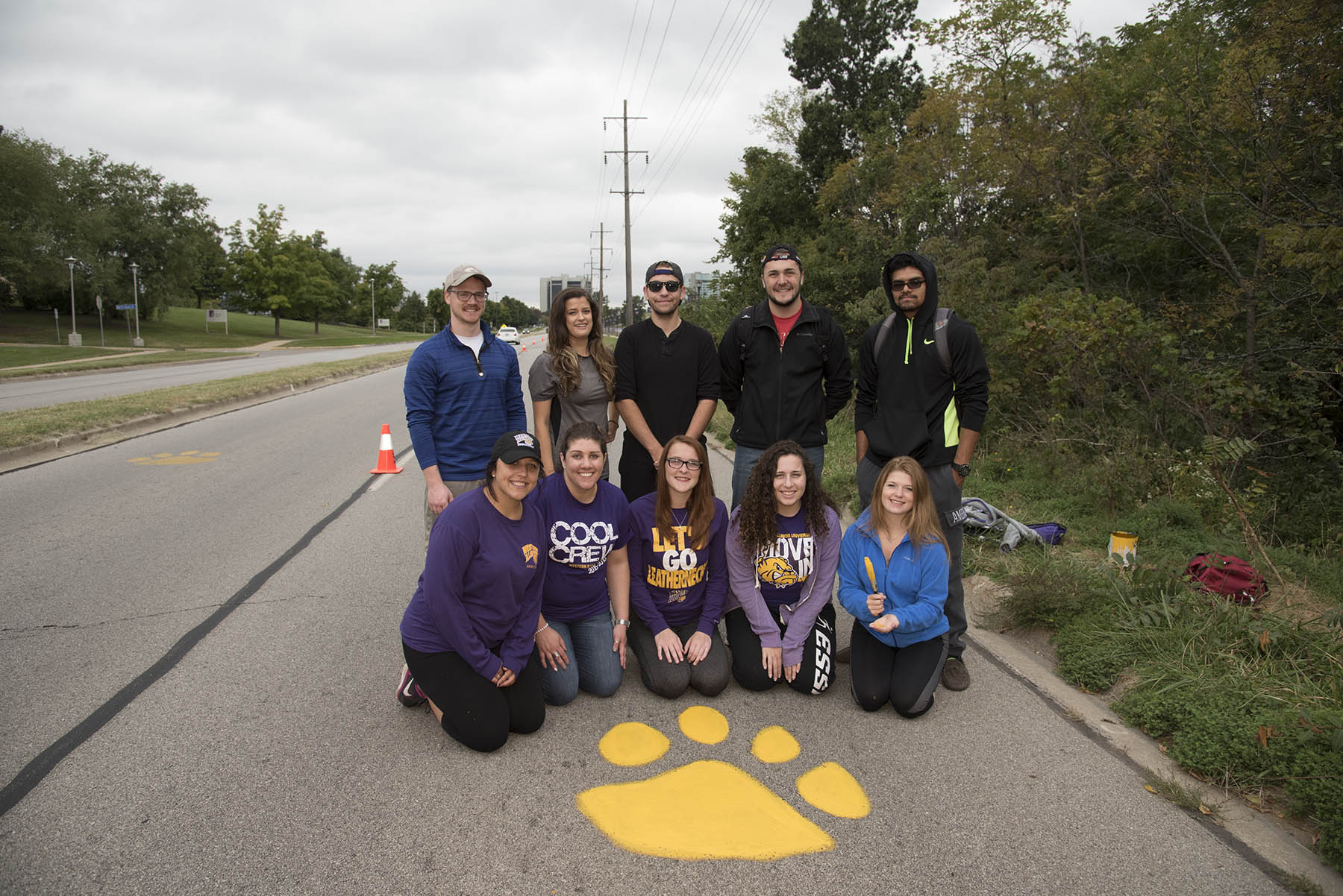 Paint the Paws, sponsored by the WIU Alumni Association and the Student Alumni Association, involves the painting of more than 200 paws along University Drive and Western Avenue to welcome alumni and visitors to campus on Homecoming Sept. 29-30. This year's Homecoming theme is "Storybook Homecoming: A Tale of Leatherneck Pride."