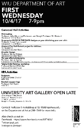 The WIU Art Gallery will also be open during the First Wednesday event.