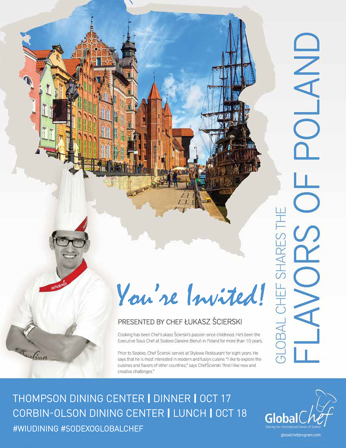 The national event will share the international flavors of Sodexo and will include a campus visit by Polish Chef Lukasz Scierski, who has designed the event menus.