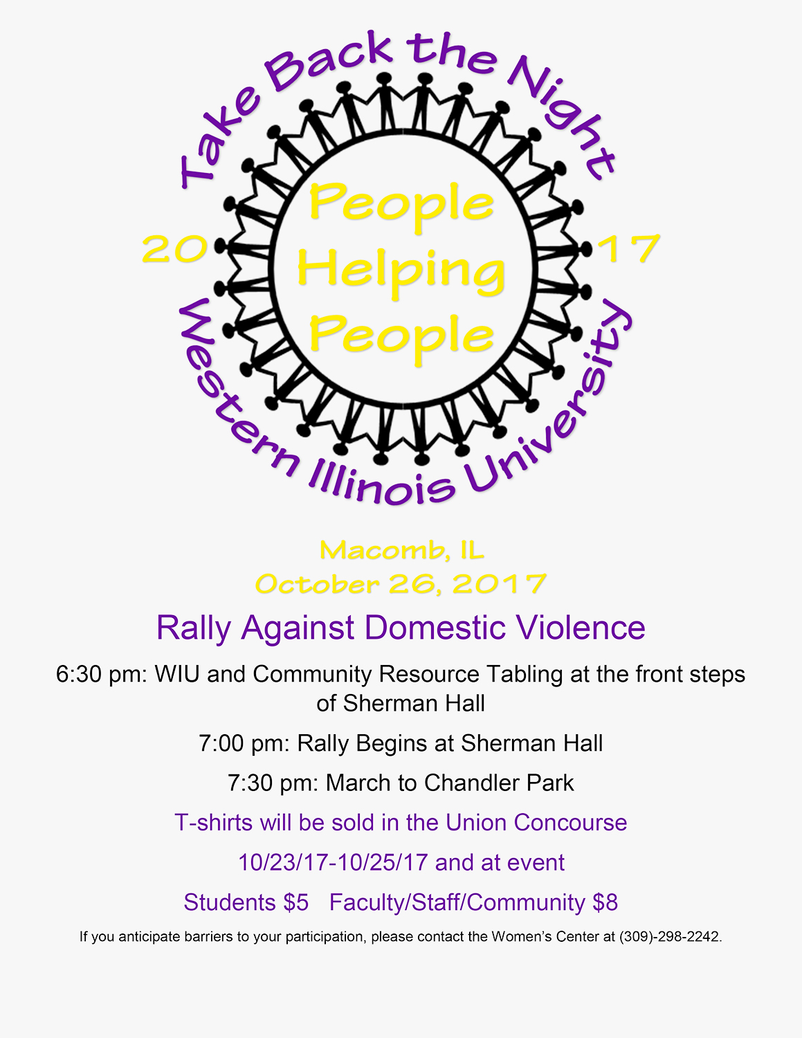 For more information about the rally, call the WIU Women's Center at (309) 298-2242.