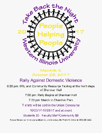 MACOMB, IL -- As part of a campaign of awareness, empowerment and fighting against sexual assault and other forms of gender-based violence, the 28th annual Take Back the Night (TBTN) march and rally will be held Thursday, Oct. 26 at Western Illinois University.