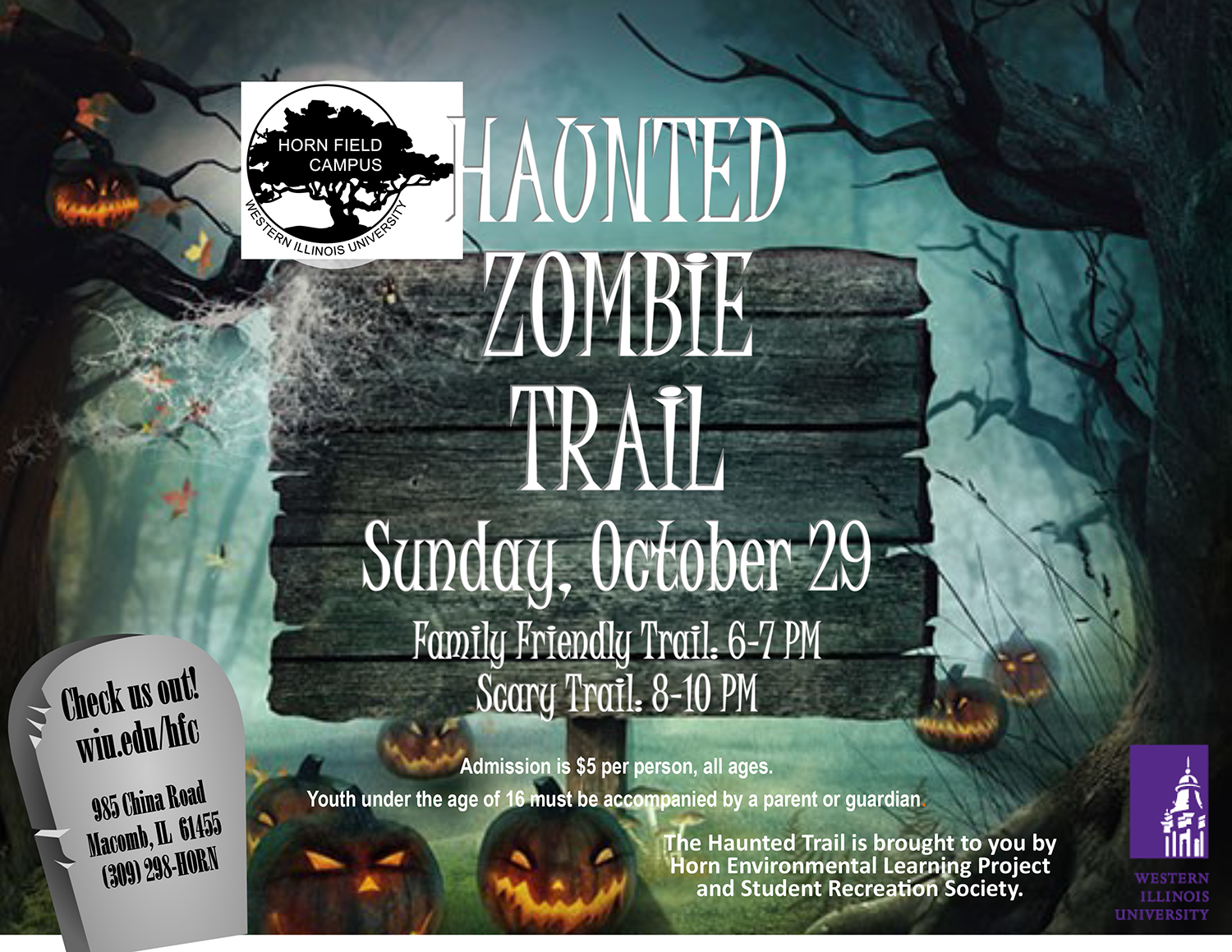 The second Horn Field event is the annual Haunted Trail Sunday, Oct. 29. The "family friendly" version will run from 6-7 p.m., followed by a "scary haunted" version from 8-10 p.m. Admission is $5 per person, and individuals of all ages are welcome. Individuals under the age of 16 must be accompanied by a parent or guardian.