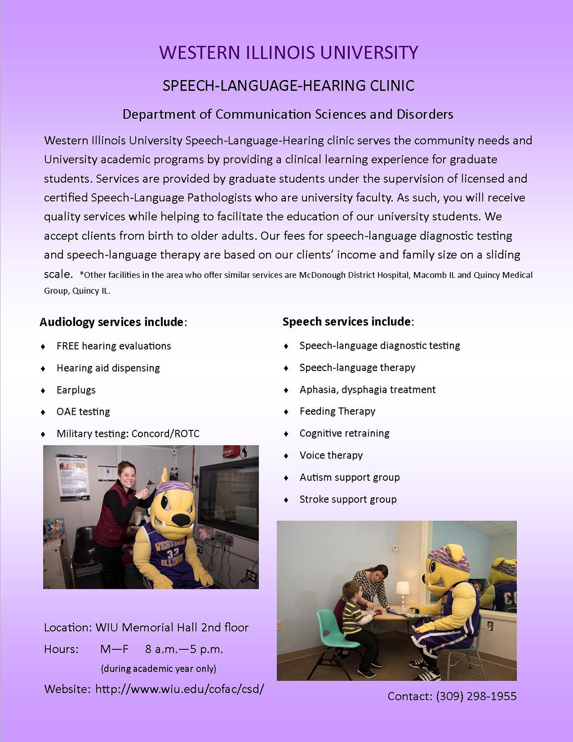 WIU Speech-Language-Hearing Clinic Offering Services to WIU and Macomb Communities