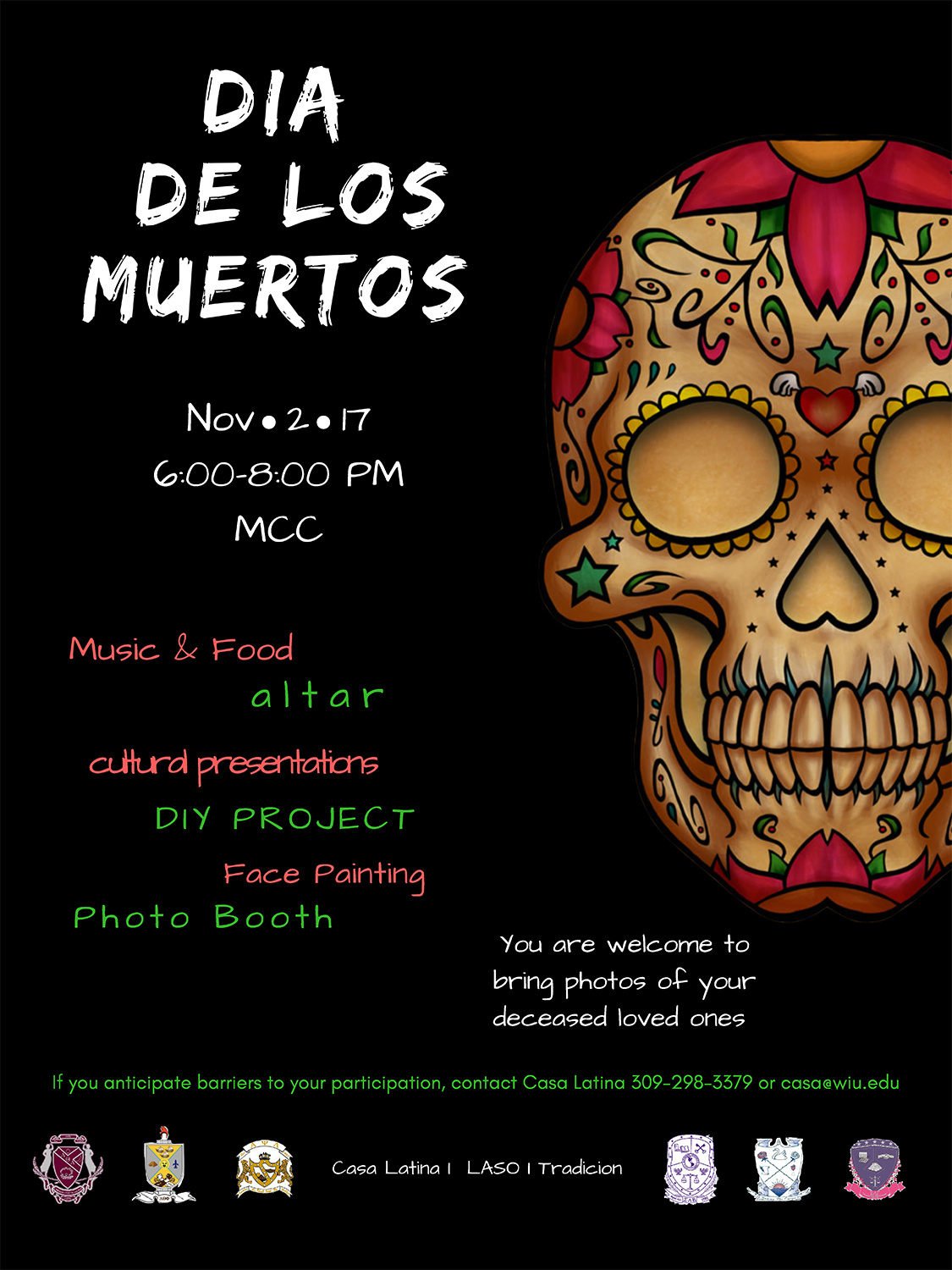 MACOMB, IL -- Casa Latina at Western Illinois University will celebrate Dia de los Muertos (Day of the Dead) from 6-8 p.m. Thursday, Nov. 2 at the Multicultural Center.