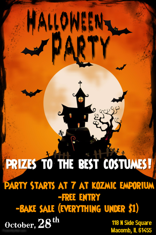 MACOMB, IL -- The Western Illinois University Anime Club will host a fundraising Halloween party from 7-10 p.m. Saturday, Oct. 28 at the Kozmic Game Emporium, 118 N. Side Square, in Macomb.