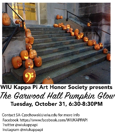 MACOMB, IL -- The Western Illinois University Kappa Pi Art Honor Society will host the Garwood Hall Pumpkin Glow from 6:30-8:30 p.m. Tuesday, Oct. 31.