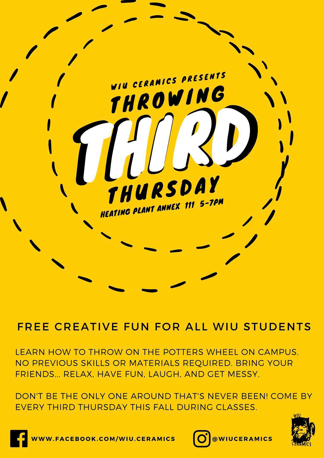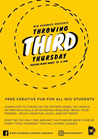MACOMB, IL -- The Western Illinois University Ceramics program will host Throwing Third Thursdays throughout the fall semester.
