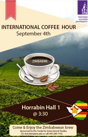 The first coffee hour will be Tuesday, Sept. 4 and will highlight Zimbabwe. Participants will be able to learn more about the tea and coffee hour of highlighted country while sampling authentic tea/coffee and snacks from the country. Students are encouraged to stay and socialize after the presentation.