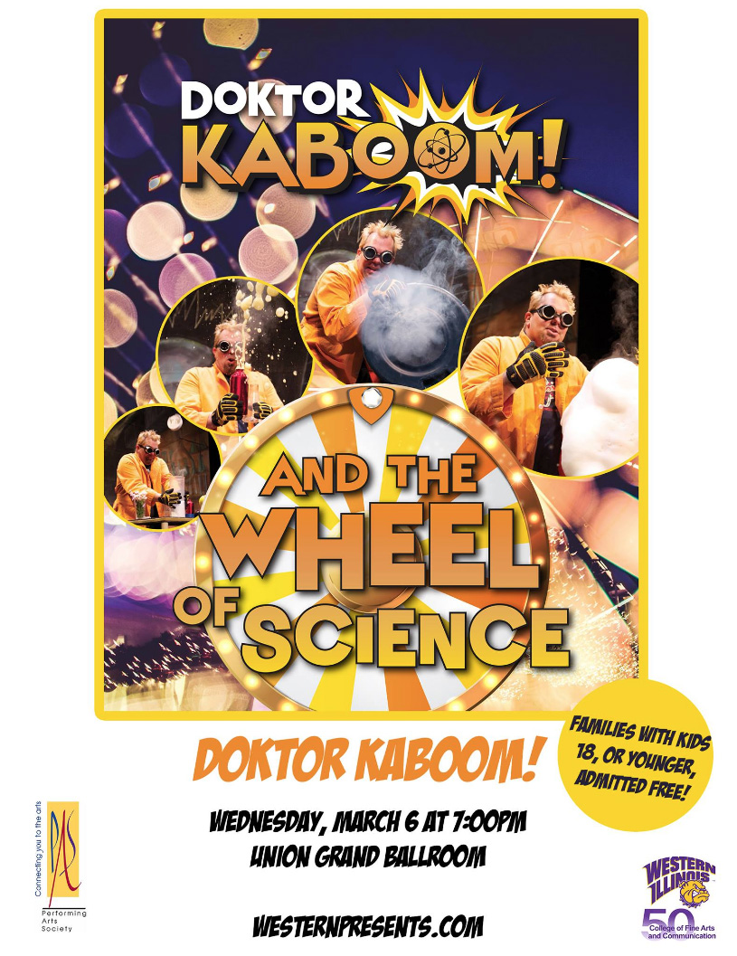 MACOMB, IL – The Performing Arts Society will again present Doktor Kaboom! at 7 p.m. Wednesday, March 6 in the Western Illinois University Union Grand Ballroom.