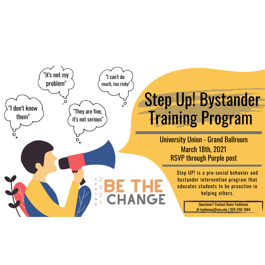 MACOMB, IL - The Student Development and Success Center at Western Illinois University will host bystander training from 6-8 p.m. Thursday, March 18 in the Grand Ballroom of the University Union.