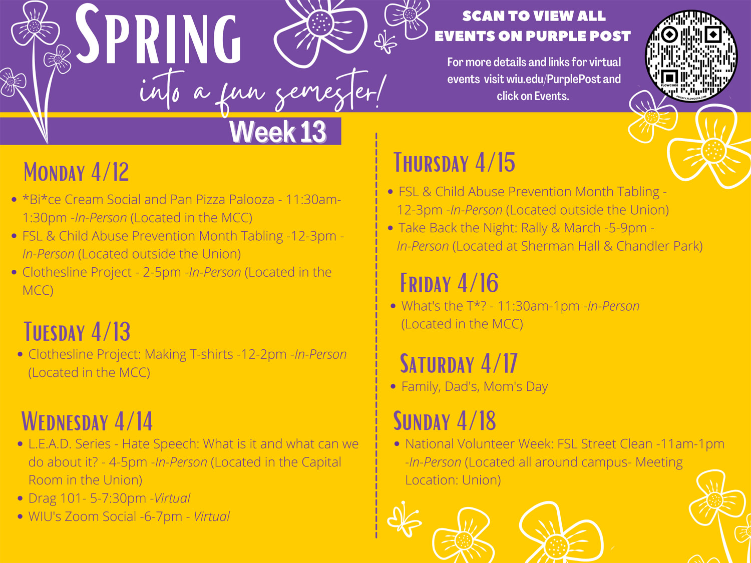 'Spring Into a Fun Semester' at WIU Continues April 12-18
