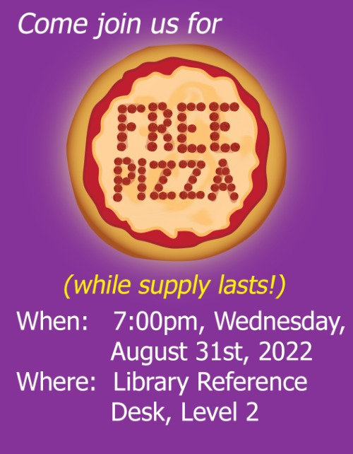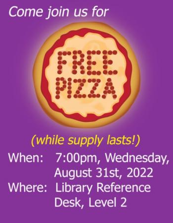 MACOMB, IL – Western Illinois University Libraries will offer free pizza, while supplies last, beginning at 7 p.m. at the Library's Reference Desk, on level two of Malpass Library.