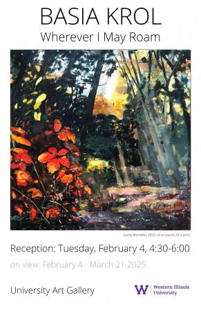 MACOMB, IL - - Galesburg artist, Basia Krol, will have her solo exhibition, "Where I May Roam" on display Tuesday, Feb. 4 through Friday, March 21 at the Western Illinois University Art Gallery.