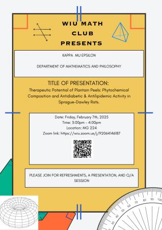 From the Department of Mathematics and Philosophy, the WIU Math Club will be hosting a presentation featuring the first speaker of the semester Abdul Latiff, a graduate student in biological sciences.