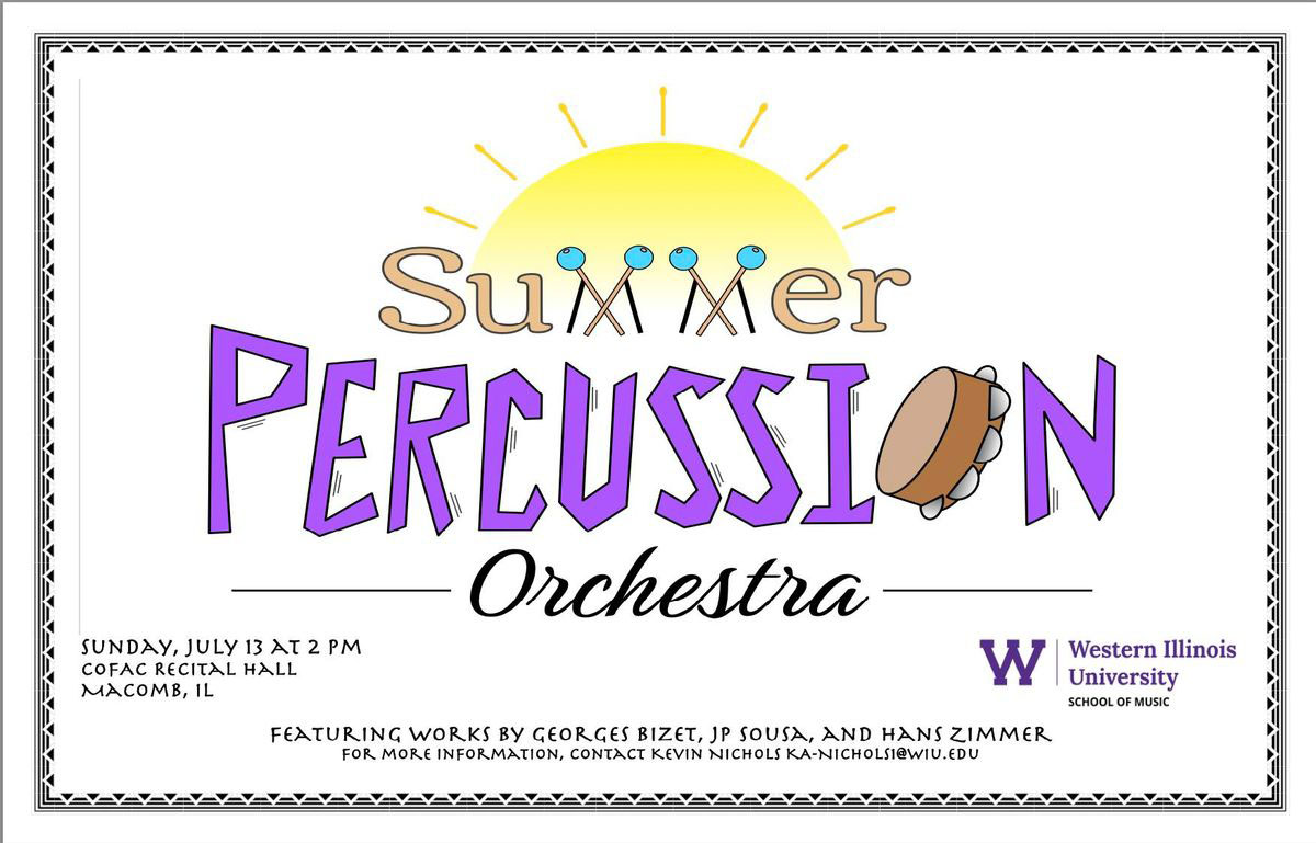 MACOMB, IL – The Western Illinois University Summer Percussion Orchestra will present a free concert at 2 p.m. on Sunday, July 13, in the College of Fine Arts and Communication (COFAC) Recital Hall.