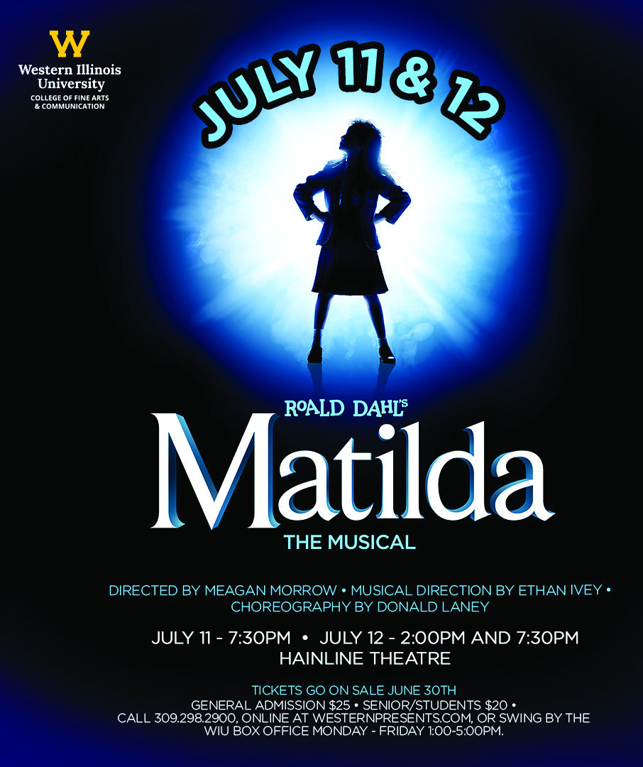 MACOMB, IL - - The Western Illinois University College of Fine Arts and Communication and the WIU Department of Theatre and Dance will present SummerStage 2025 performances of "Matilda the Musical" at 7:30 p.m. Friday, July 11 and 2 p.m. and 7:30 p.m. Saturday, July 12 in the Hainline Theatre on the WIU campus.