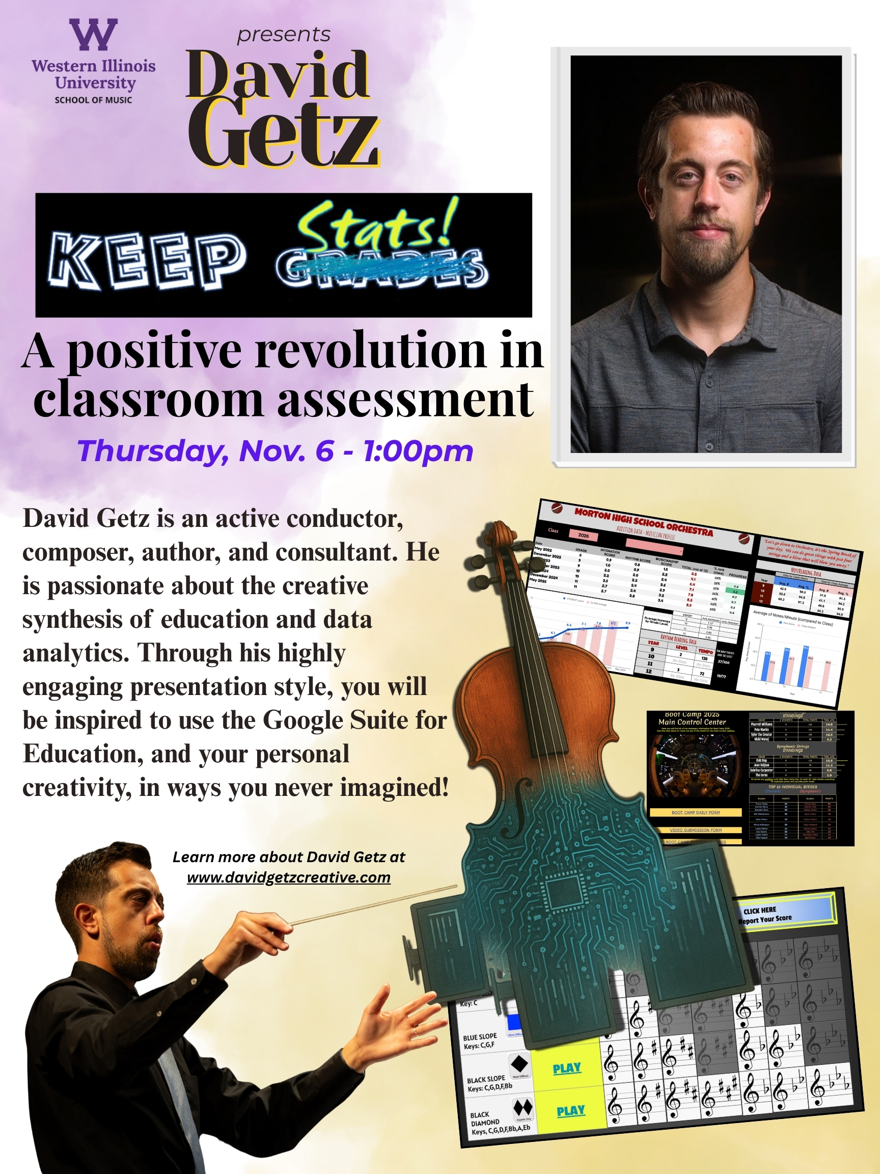 This session, hosted through WIU, invites educators to challenge traditional grading systems and explore how statistics-based assessment can transform performance-based classrooms. Rather than focusing solely on letter grades, Getz demonstrates how tools such as Google Sheets and Google Forms can be used to track, analyze and visualize student progress in ways that are both pedagogically meaningful and creatively engaging.