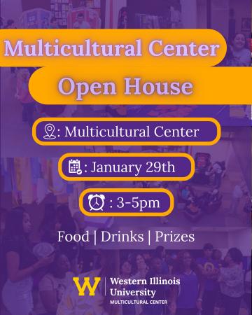 MACOMB, IL - - The Western Illinois University Multicultural Center (MCC) invites the campus community to kick off the spring semester by attending its Spring Open House from 3-5 p.m. Thursday, Jan. 29, at the Multicultural Center.