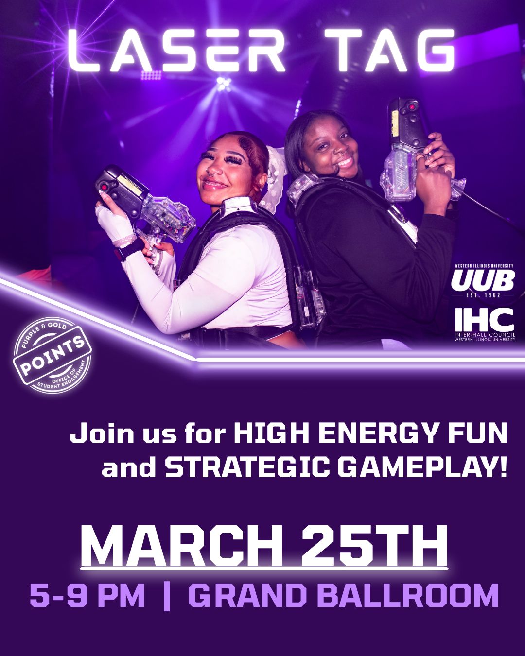 MACOMB, IL — The University Union Board (UUB), in collaboration with the Inter-Hall Council (IHC), will host a Laser Tag event from 5–9 p.m. Wednesday, March 25 in the Grand Ballroom of the University Union. The event is open free to all Western Illinois University students.