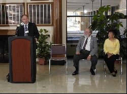 The Teeters were on the WIU campus today (Oct. 20) to announce their planned gift that will benefit Western at the time of their deaths. They have named Western Illinois University as a beneficiary of a $20 million trust that they have recently funded. The trust has a payout rate of eight percent, and the income from the trust will support Western for a period of 20 years. Proceeds from the trust will be directed to The Norman and Carmelita Teeter Endowment and will support Western�s psychology department and international programs.