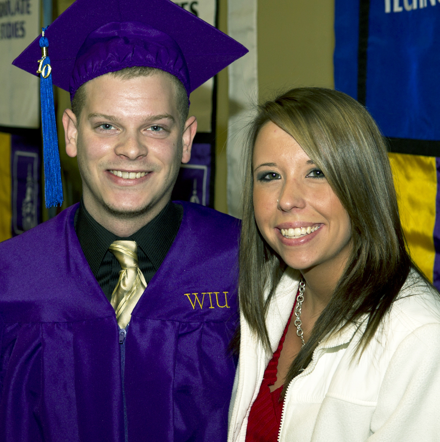 One graduate, Royce Lee (Macomb), a business management major, received permission to pop "The Question" to his fiancée in the line-up area before the morning ceremony. A surprised Jessica Smith said yes to Royce, but a date has not been set. (see photo of the couple)