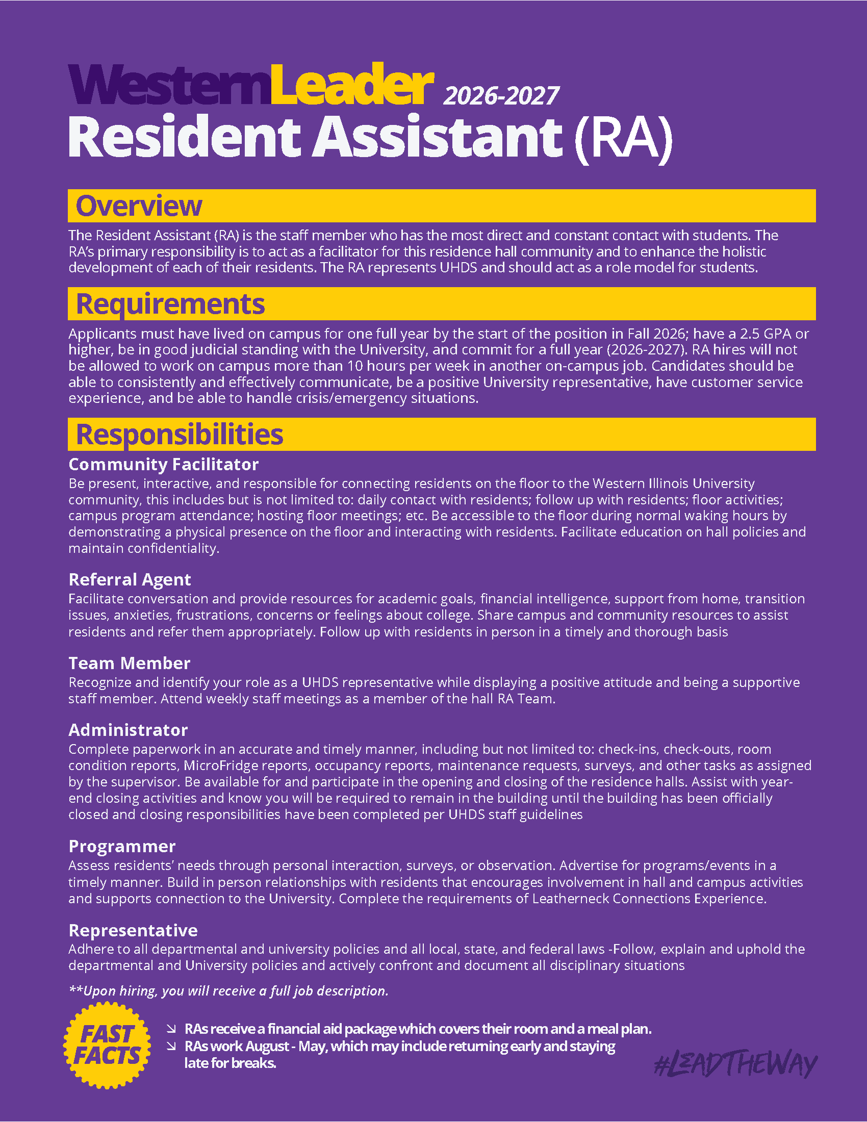 View full job description for the Resident Assistant position.